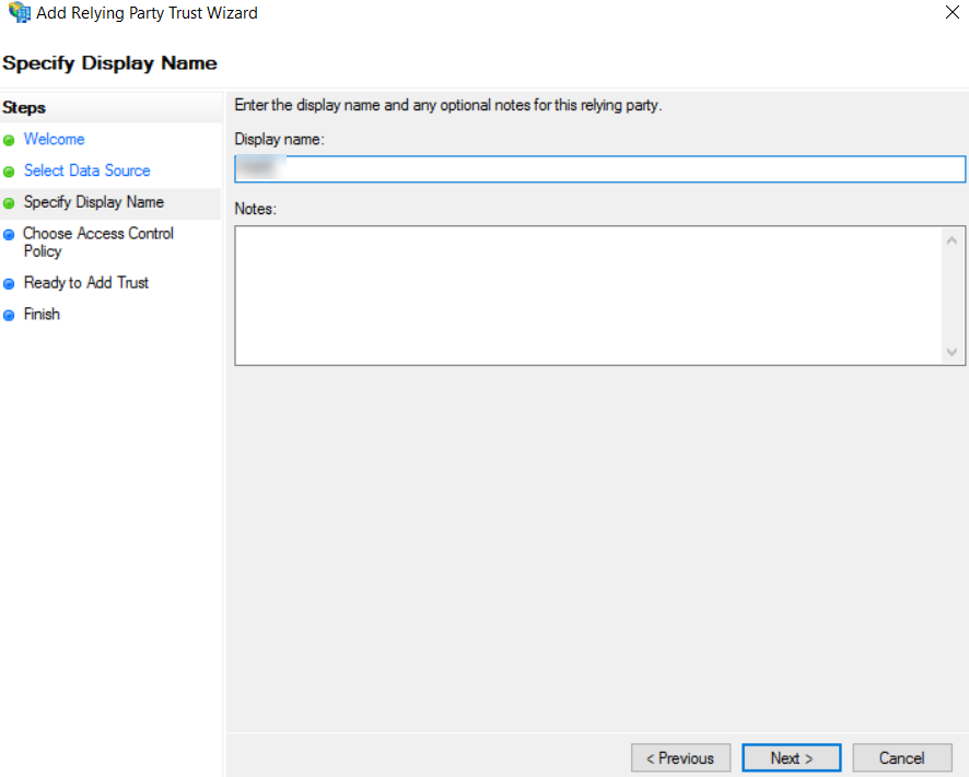 メモ:ユーザーをADからAM360にすでにインポートしている場合、そのログイン名は、形式DOMAIN\Loginnameで保存されます。デフォルトでは、Windowsアカウント名を受信クレームタイプとして設定すると、この形式と一致します。ただし、PAM360ローカルアカウントをCSVファイルを使ってADユーザー向けに作成した場合、代わりに、PAM360に保存されているログイン名と一致する別のクレームタイプを選択する必要があります。