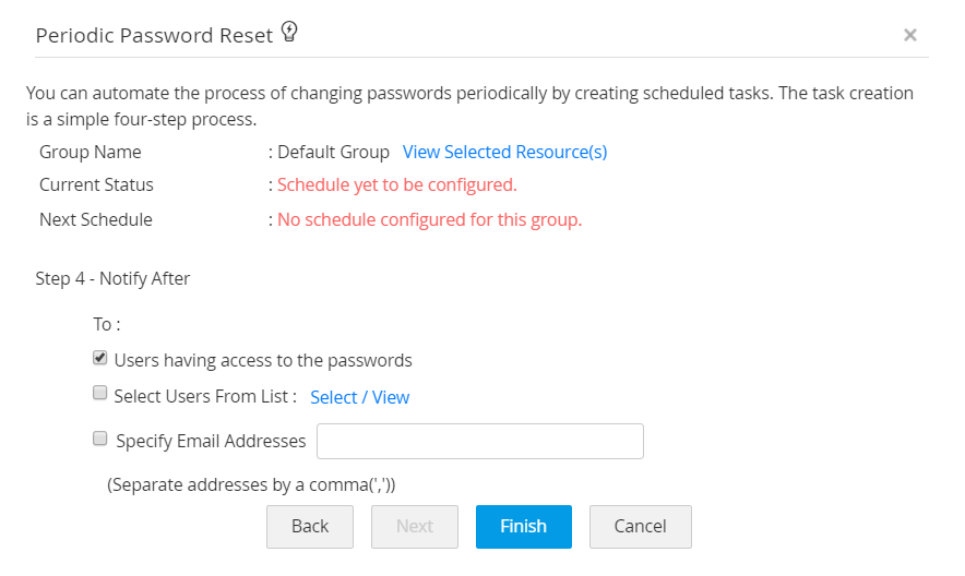 必要なボックスをチェックし、[終了]をクリックします。必要なパスワードリセットスケジュールが作成されました。