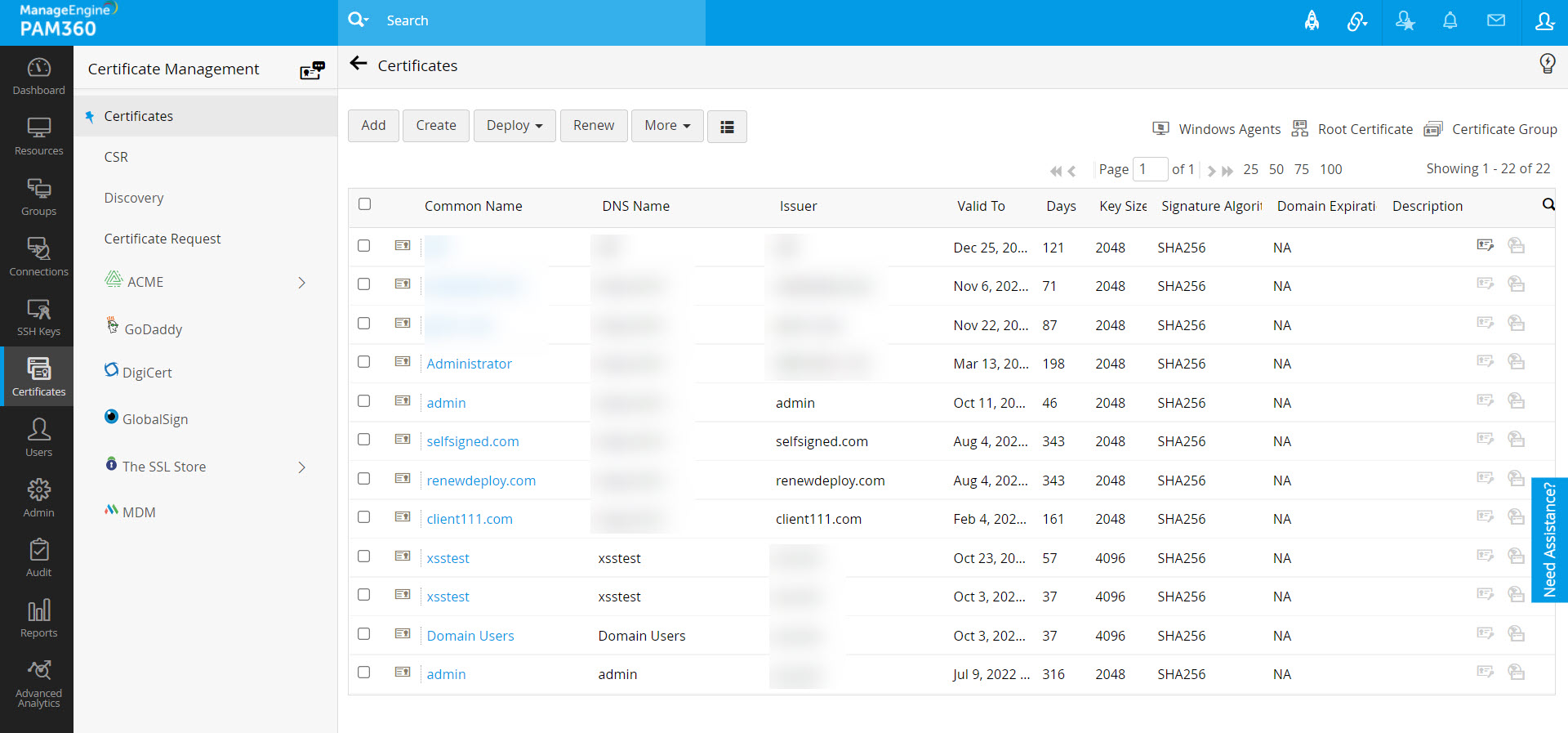 取り消された証明書は、PAM360から直接、信頼のあるサードパーティから新しい証明書と入れ替えることができます。PAM360を使った証明書要求と展開についての詳細は、詳細ヘルプを参照してください。