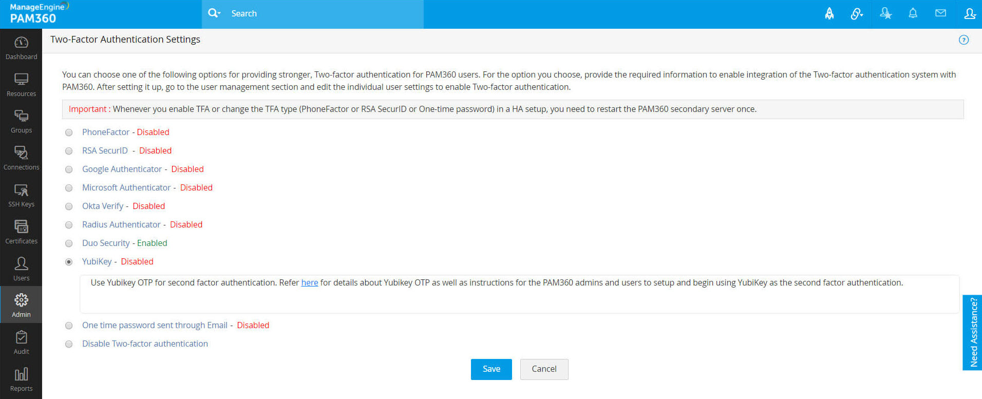 - YubikeyTFAが有効のときにPAM360 Webインターフェイスに接続