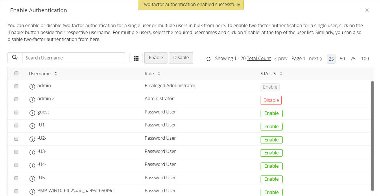 - [有効化]をクリックして、Yubikey二要素認証の実行に必要なユーザーを選択します。