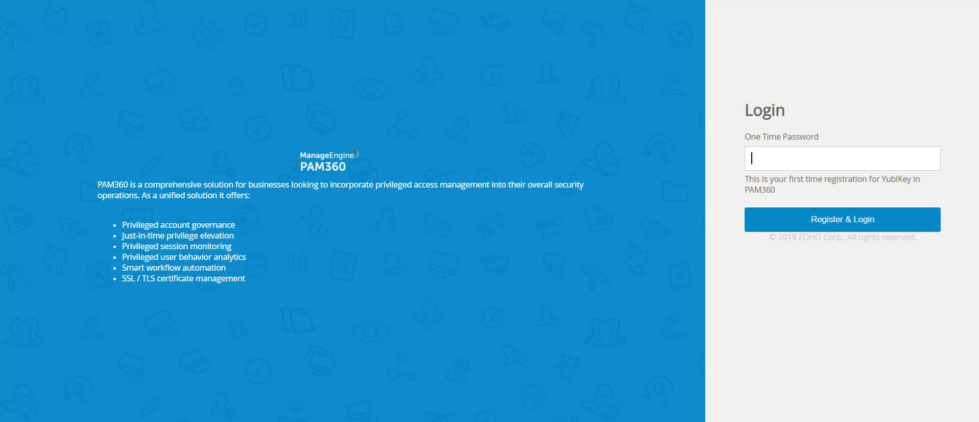 YubiKeyは、安全で強いユーザー認証が可能なYubico作成の物理キーです。本書に記載の以下の手順にしたがって、YubiKeyでPAM360に二要素認証をセットアップできます。