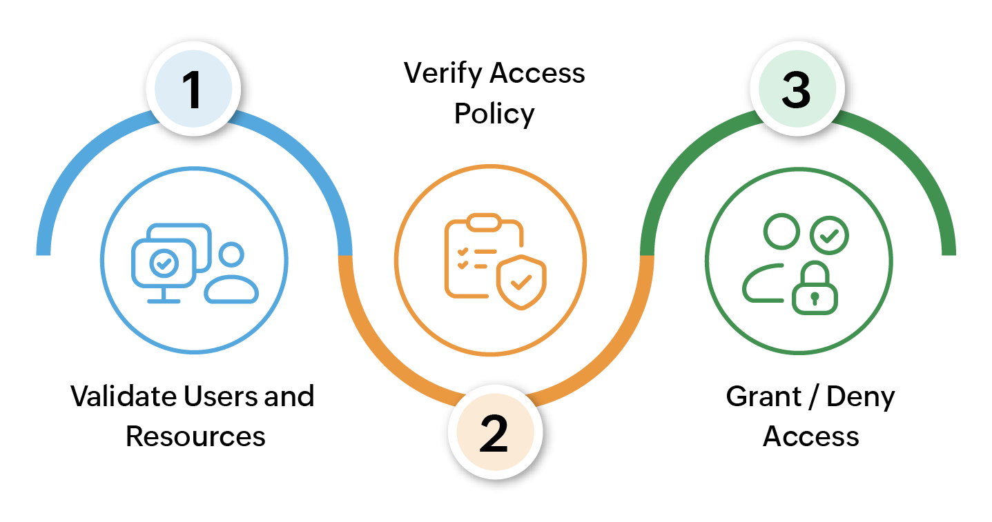 Zero Trustは、アイデンティティには関係なく、アクティビティと状態を直観的に信頼するのではなく、スコアベースのアクセスポリシー方法で確認することで、組織のリソースでユーザーにアクセス権限を付与する注目の方法です。このアプローチの最重要な目標は、信頼しないこと、および組織に権限を付与する前に検証することです。リアルタイムユーザー/リソーススコアを形式設定することで、Zero Trustアプローチでは、脆弱なユーザーと非準拠デバイスを炙り出すことで、ポリシーベースのアクセス権限方法によりそのユーザーやリソースへのアクセス権限を制限します。