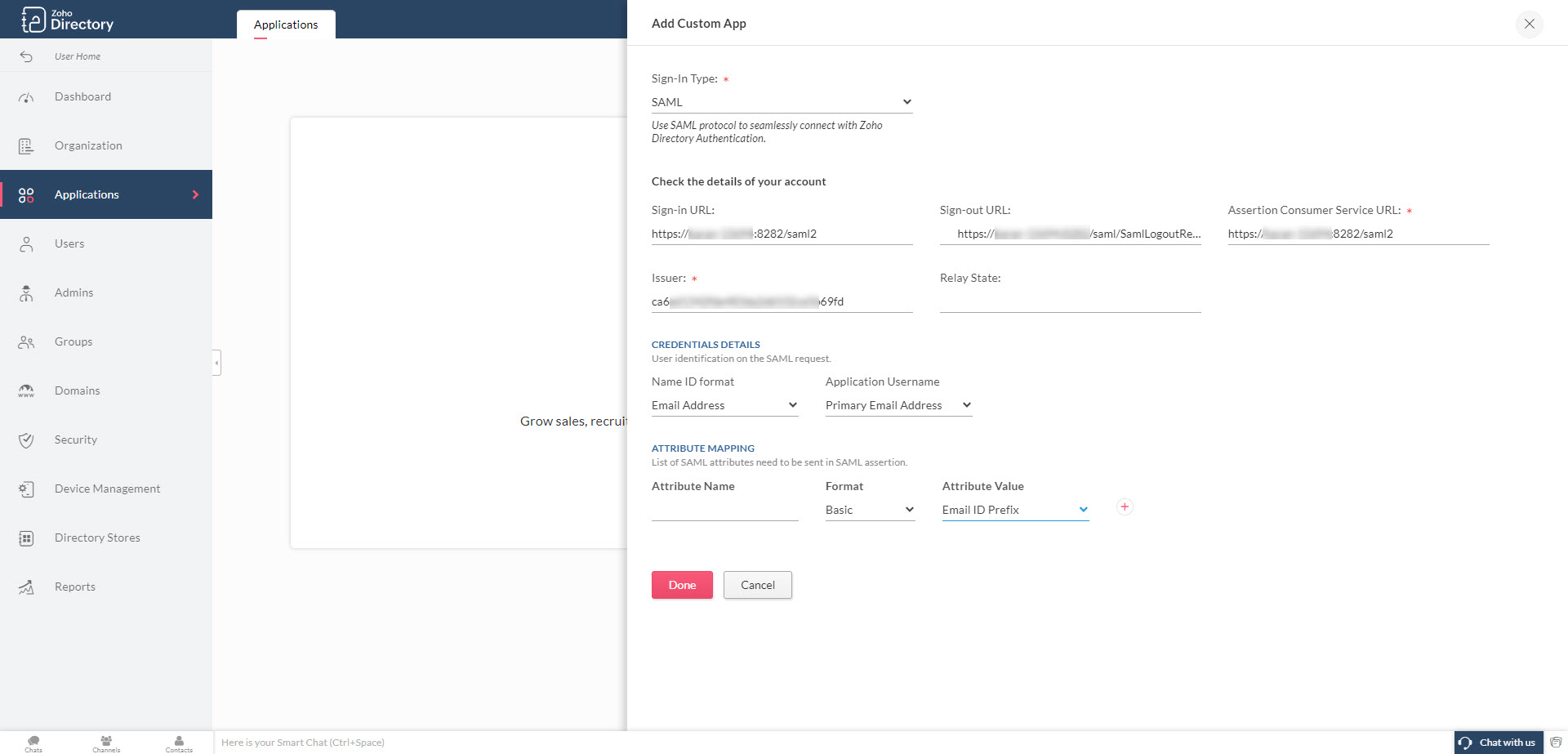 注記:この設定を実行する管理者は、Zoho Directory にアプリケーションを追加および割り当てる権限を持っている必要があります。