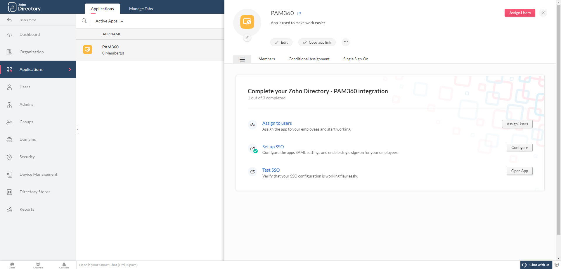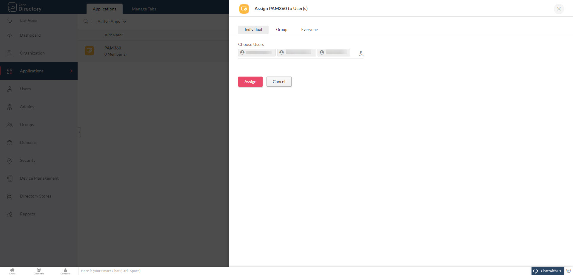 - Zoho Directory ユーザーを PAM360 アプリケーションに割り当てる