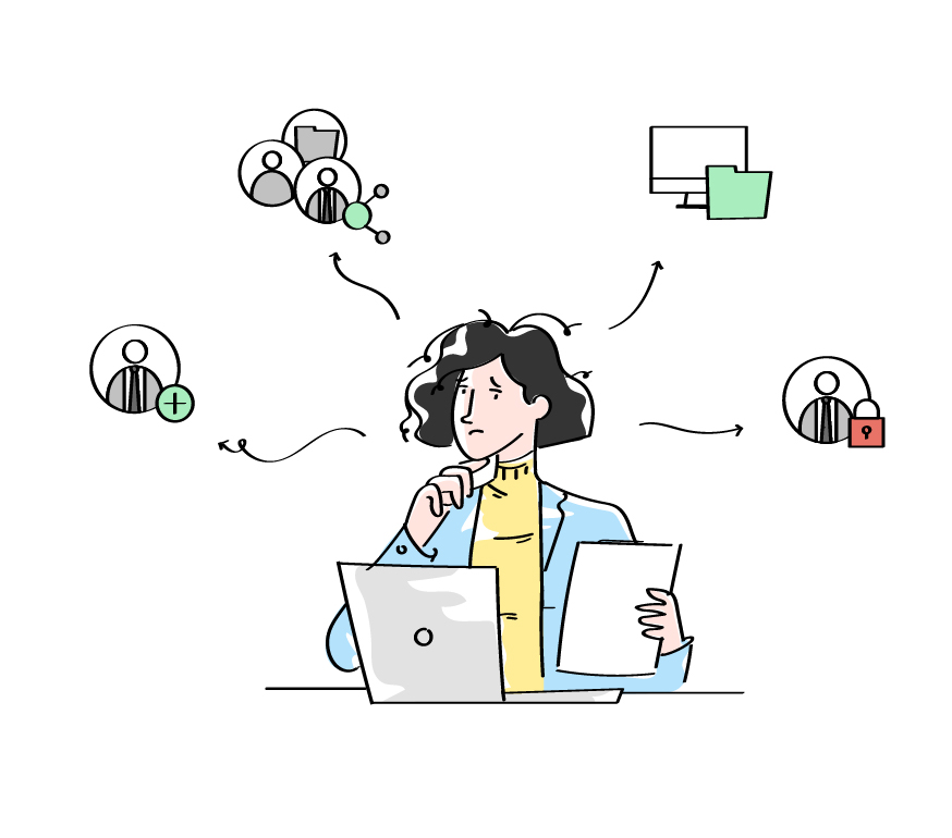 - 部門、宛先およびチーム要件にあわせて、多様な特権リソースを共有する大勢の従業員。