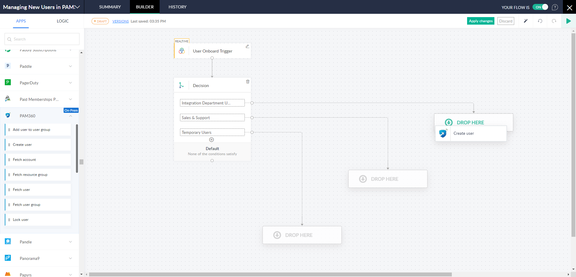 - ビルダ - ここでは、このフローでPAM360と他のアプリケーションで自動化する必要があるタスクを作成します。