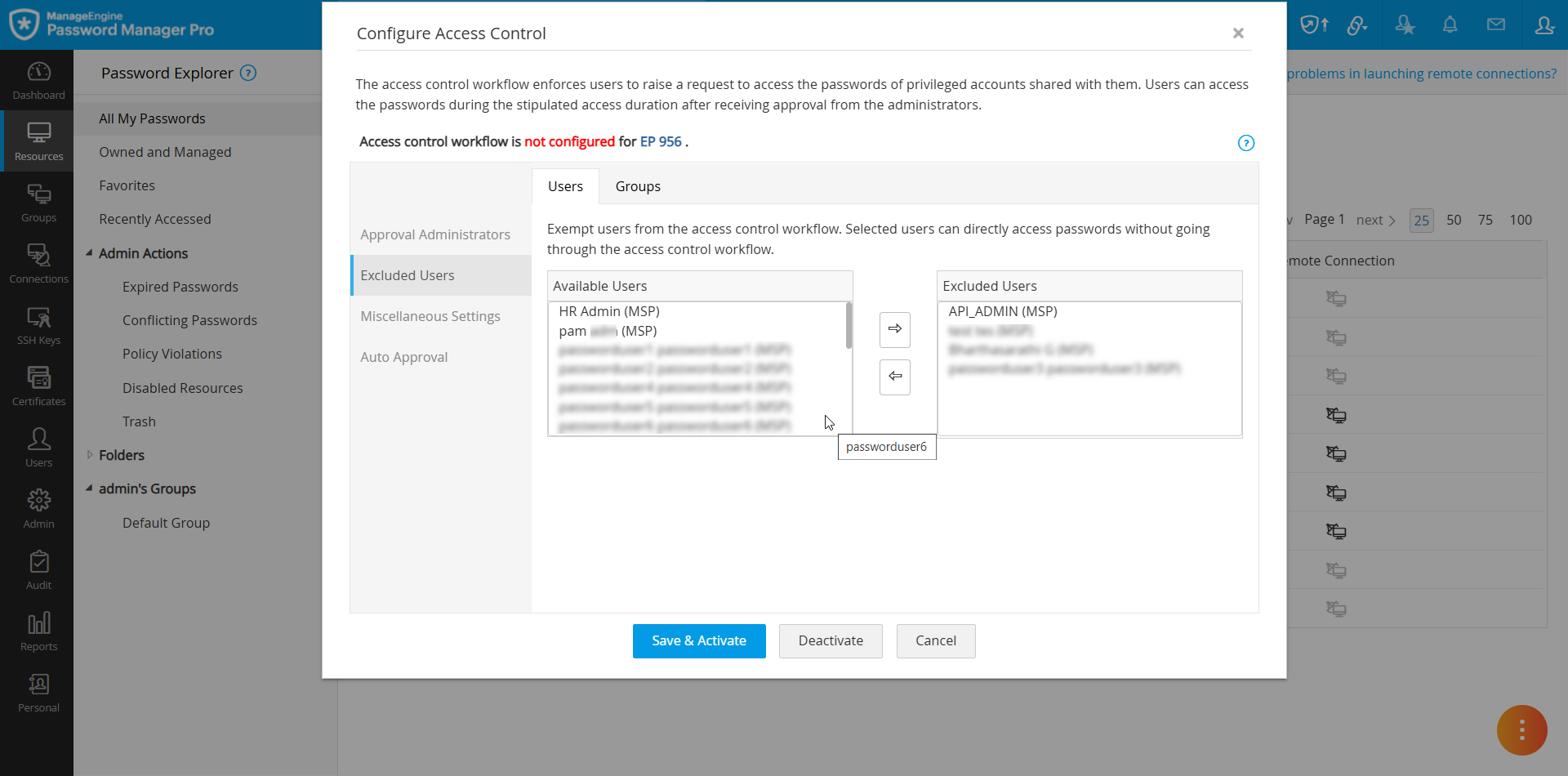 最後に、承認管理者、除外ユーザー、アクセスポリシー、承認設定などの必要な詳細を確認した後、[保存&アクティブ化]ボタンをクリックして、選択したリソースのアクセス制御ワークフローを正常に構成します。