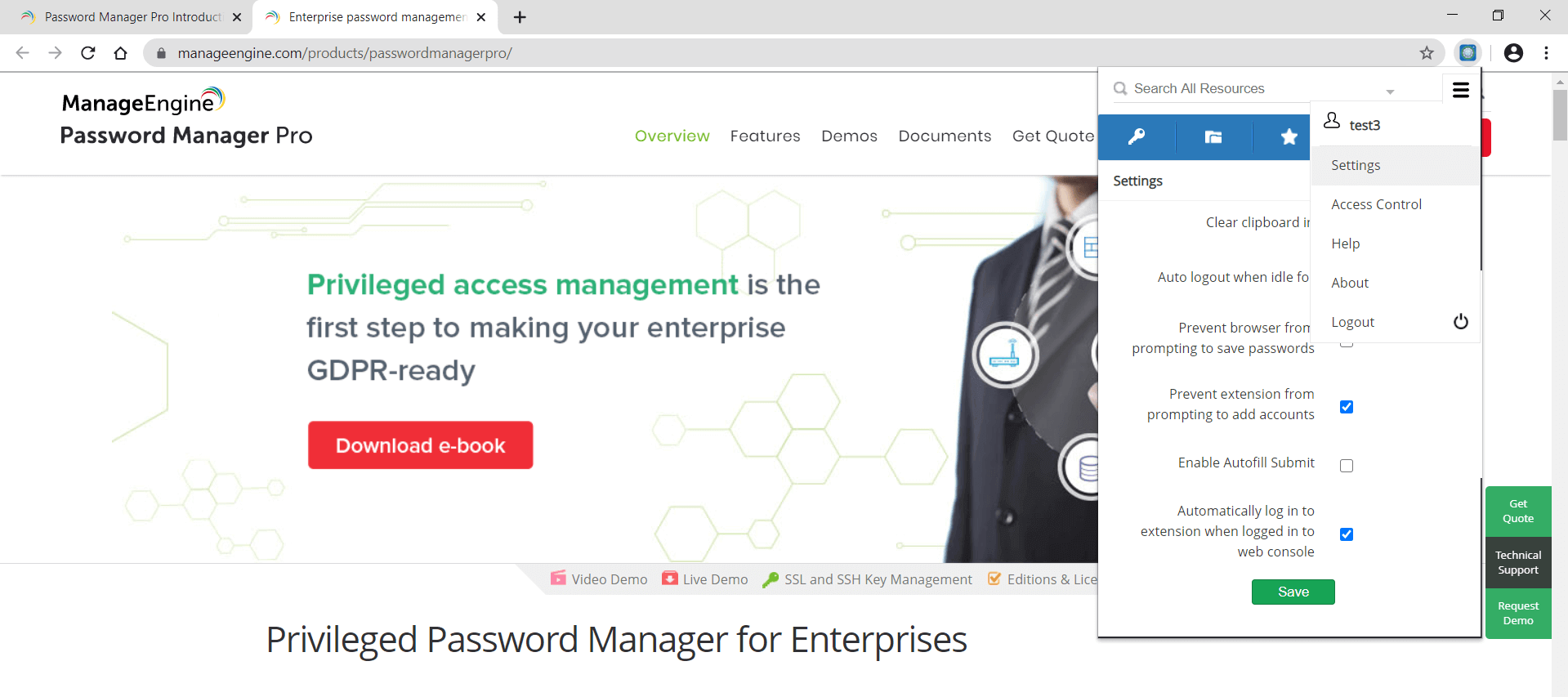 Password Manager Proブラウザ拡張機能は、Password Manager Proヴォルトから、保存された認証情報を安全に取り込み、対象の拡張機能Webページ/Webサイトのフォームに自動入力するように設計されています。この機能では、ユーザーは、WebサイトおよびWebアプリケーションに自動ログインできるため、認証情報を手動で入力する必要がありません。