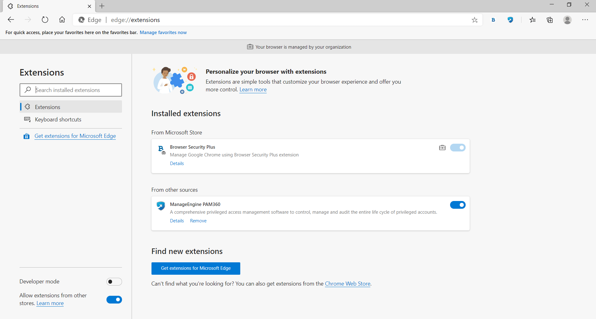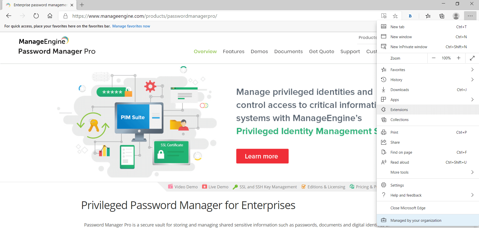 本書では、Edgeブラウザ拡張機能について詳細に説明します。拡張機能、その設定のインストール手順および権限付きリソースの管理のサポート方法については、以下で詳細に説明します。