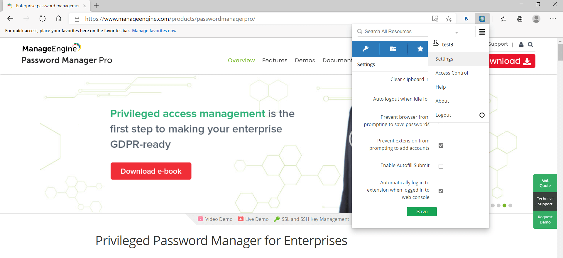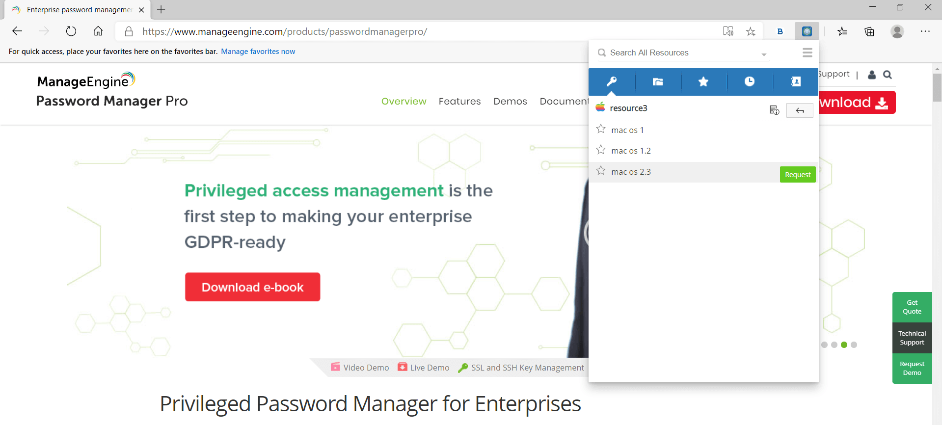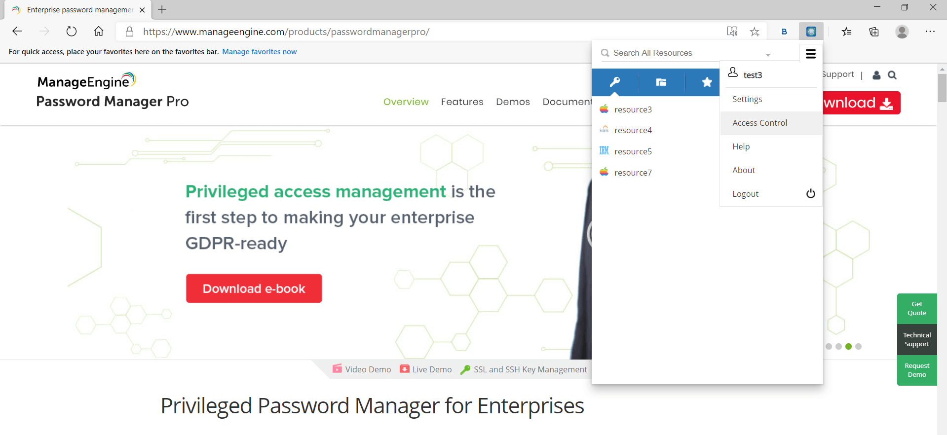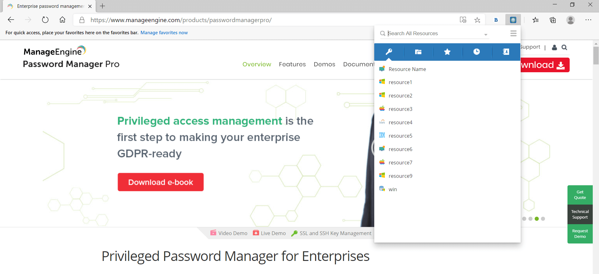 拡張機能により、パスワードをWebサイトおよびWebアプリケーションに自動入力し、自動ログオンゲートウェイをセットアップしRDPとSSHセッションを起動できます。すべてのパスワード、リソースグループ、お気に入りおよび最近使用したリソースを表示でき、また、リソースを検索することもできます。