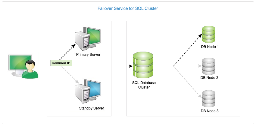 PMPのフェールオーバーサービスは、パスワードとその他特権リソースへの滞りないアクセスを確立することを目的としています。PMPの「高可用性」機能は、それぞれPMPのプライマリおよびセカンダリサーバーに割当てた二つの異なるデータベースインスタンスを必要としますが、「フェイルオーバーサービス」は、共通のMS SQLクラスタへアクセス権を持つリダンダントPMPサーバーが、順番にMS SQLクラスタと結合した複数のPMPデータベースインスタンスを使用していきます。