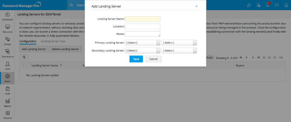 ステップ1:必要なランディング サーバーを Password Manager Pro のリソースとして追加します