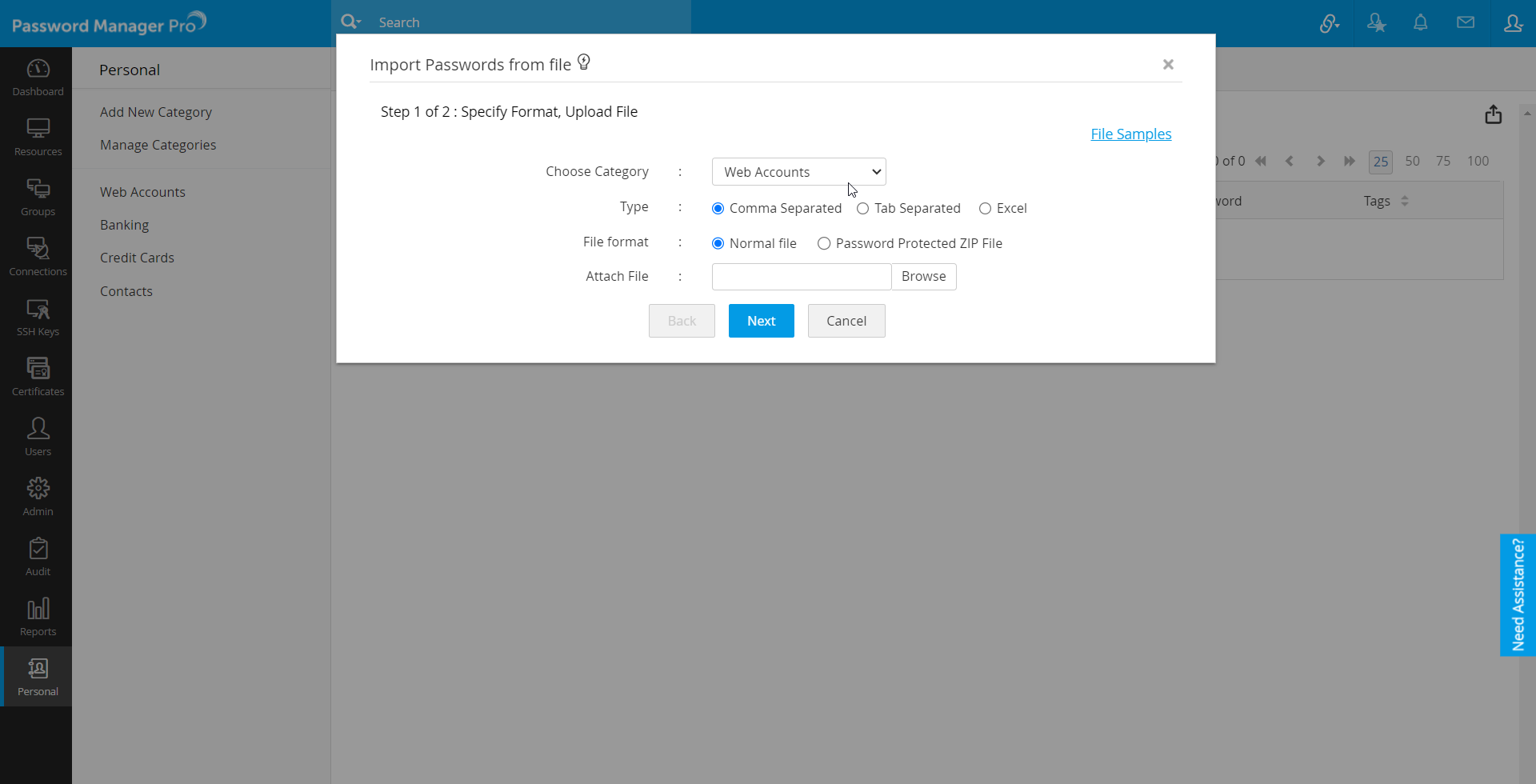- [参照]をクリックし、パスワードをインポートするファイルを選択します。