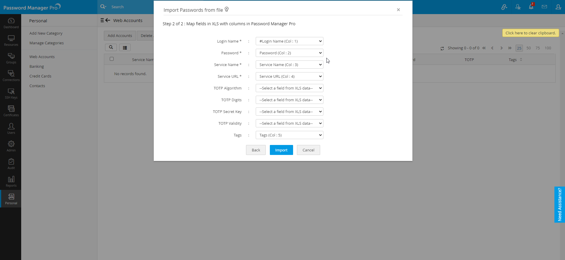 [パーソナル] タブに追加されたパスワードを一括でインポートおよびエクスポートします。