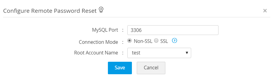 - MySQL サーバーの場合、デフォルトのポートは 3306 です。[ルート アカウント名] ドロップダウン リストから管理者アカウントを選択し、設定を保存します。