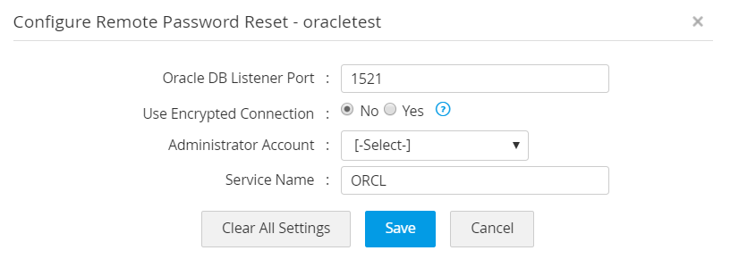 - Oracle DB サーバーの場合、デフォルトのポートは 1521 です。ドロップダウンリストから管理者アカウントを選択し、設定を保存します。