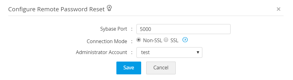 - Sybase サーバーの場合、デフォルトのポートは 5000 です。ドロップダウン リストから管理者アカウントを選択し、設定を保存します。