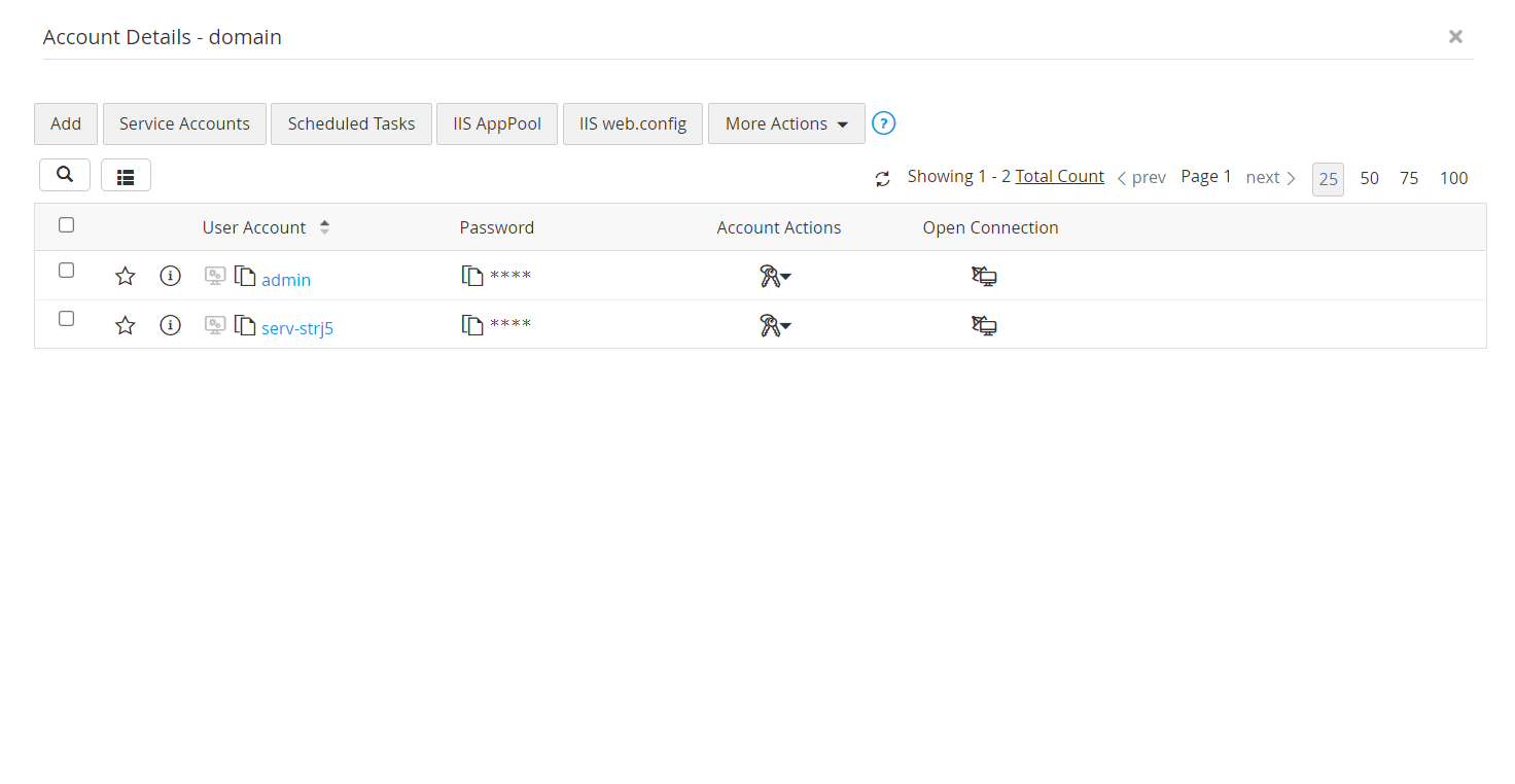 Windows アカウントをディスカバリーすると、Password Manager Pro はドメイン メンバーに存在するサービスに関連付けられたサービス アカウントも自動的に取得します。Windows サービス アカウントディスカバリーとインベントリ内での列挙は、以下で説明するように行われます。