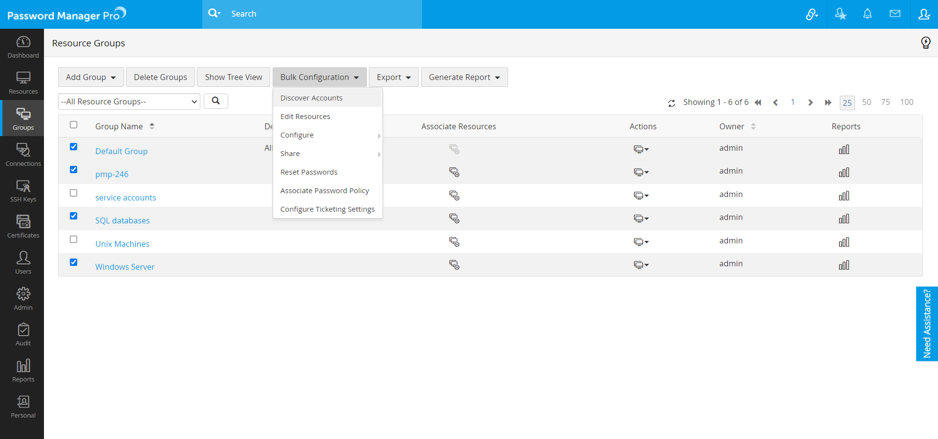 リソースの特権アカウントを定期的に自動的にディスカバリーできます。これはリソース グループ レベルで構成できます。この方法でディスカバリーされたアカウントは自動的に追加されます。