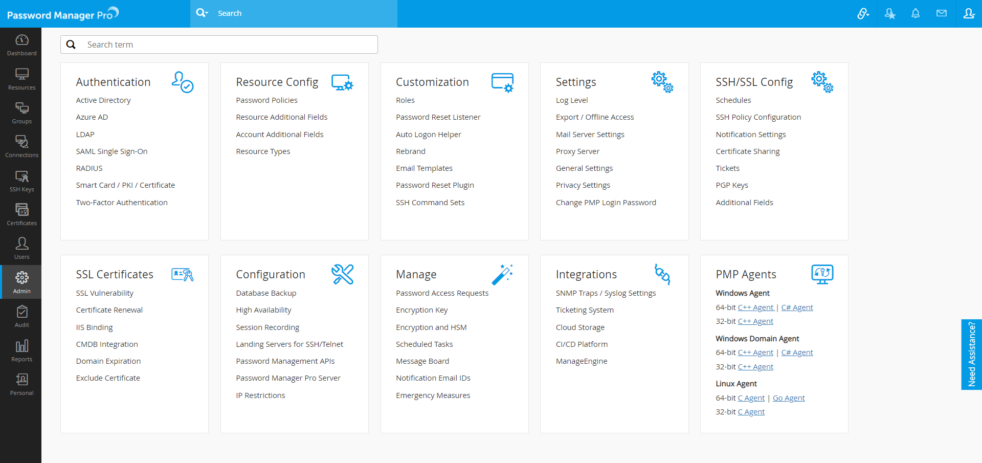 特権アカウントディスカバリーは、Password Manager Pro UI の 4 つの場所から開始できます。