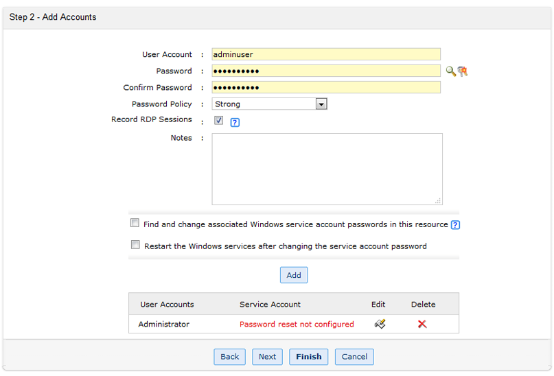 リソース追加時によくある質問です。例をあげて次に説明しましょう:アカウントに強力なパスワードを持たせたい場合、管理者権限を持つ他のユーザーがこの意向を妨害してはいけません。そのため、この手順はリソース追加時に重要となります。