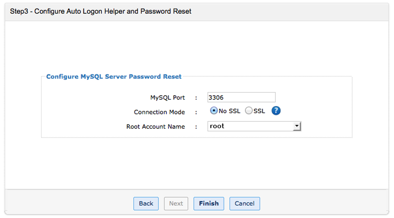 MySQLサーバーのパスワード リセットはJDBC経由で行います。そのため、MySQL管理者の資格情報が必要です。MySQLサーバーのリモート パスワード リセットを有効化する手順は次の通りです: