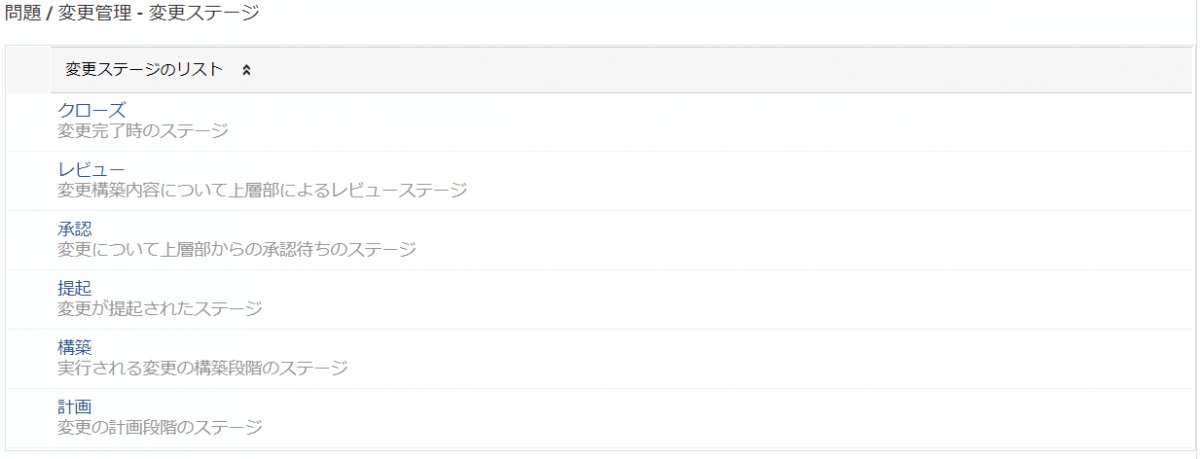 ServiceDesk Plusの変更ライフサイクルは次の6段階に分かれています。