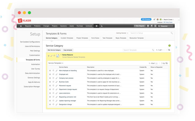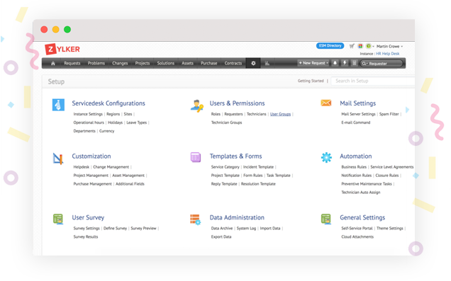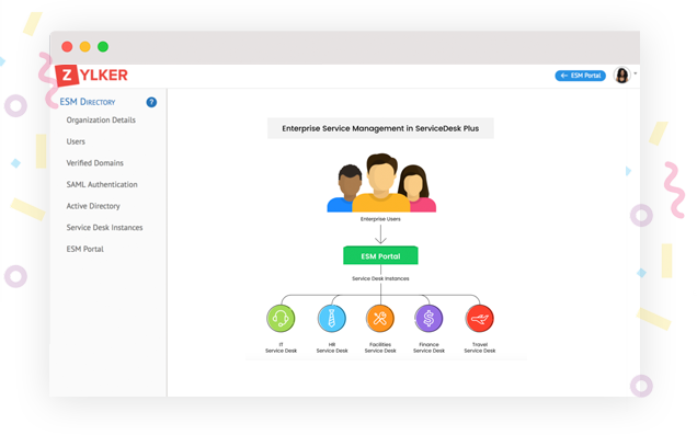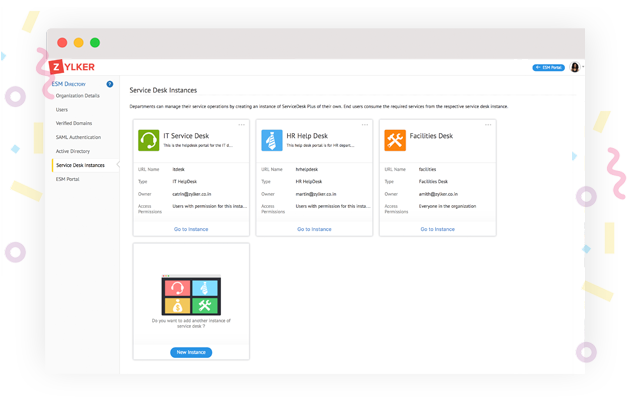 ESMポータルからのユーザーのアクセス権を含むサービスデスク・インスタンスを管理できます。