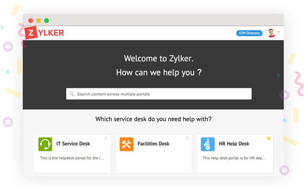 集中型問い合わせポータルから部署ごとのサービスデスクにアクセスできます。