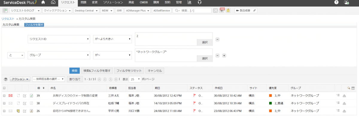 以下は、インシデント管理ツール ServiceDesk Plusを用いたインシデント対応の一例です。