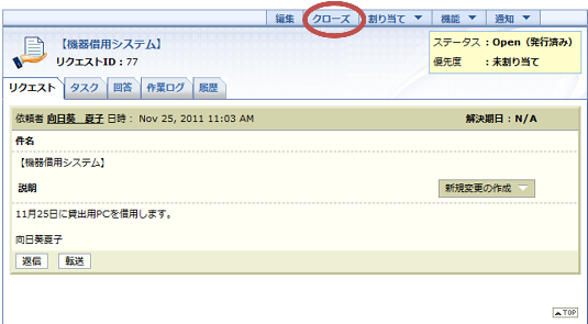 サービス要求の一連のプロセスが完了したら、サービス要求のステータスをクローズに変更します。