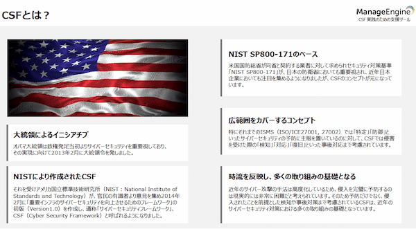 そこで、ゾーホージャパンはCSFのポイントをまとめた要約版「サイバーセキュリティフレームワーク(CSF)の実践におけるヒント」を作成し、無償提供する運びとなりました。