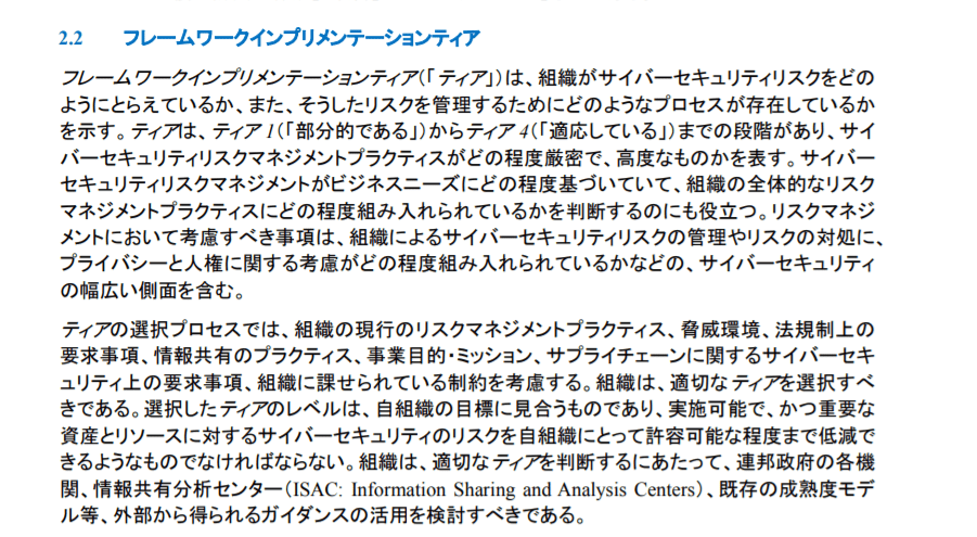 - 2.ティア(Tier):対策状況を数値化し、組織を評価する基準