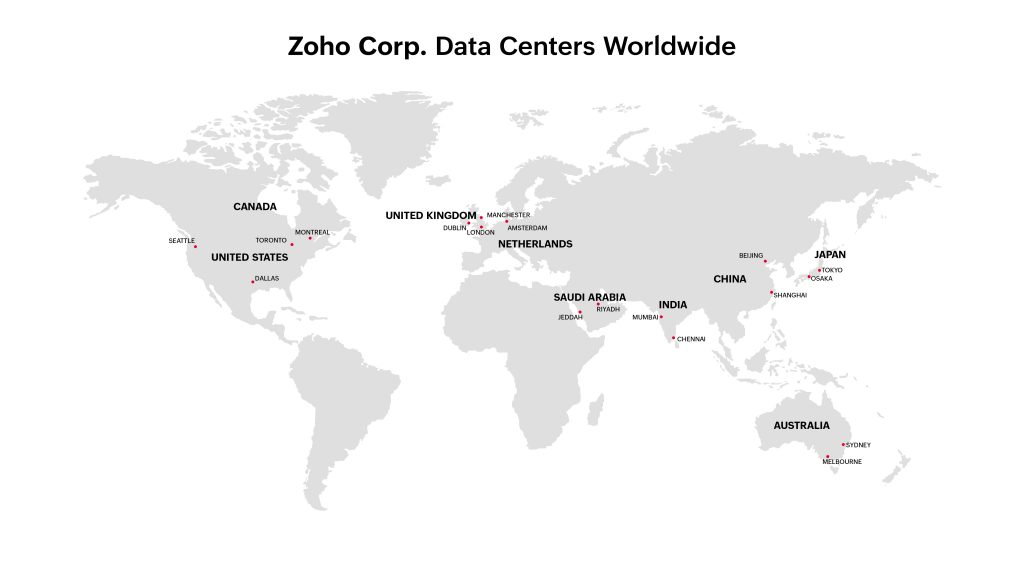 ManageEngineクラウドサービスは、サインアップ時にホストするデータセンターを選択(またはアクセスしている国に応じて自動的に選択)します。ご利用中のデータセンターは、基本的にURLのトップレベルドメインからご確認いただけます。