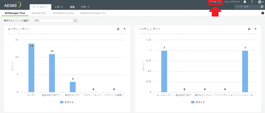AD360 購入時または年間ライセンスの更新時にライセンスを適用することで、購入いただいたライセンスの機能が利用可能となります。