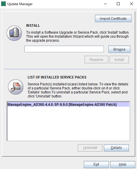 AD360のサービスパックのインストールによる、アップグレードの手順は次の通りです。