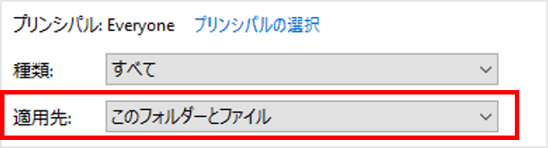 6.適用先を「ファイルのみ」から「このフォルダ―とファイル」に変更します。