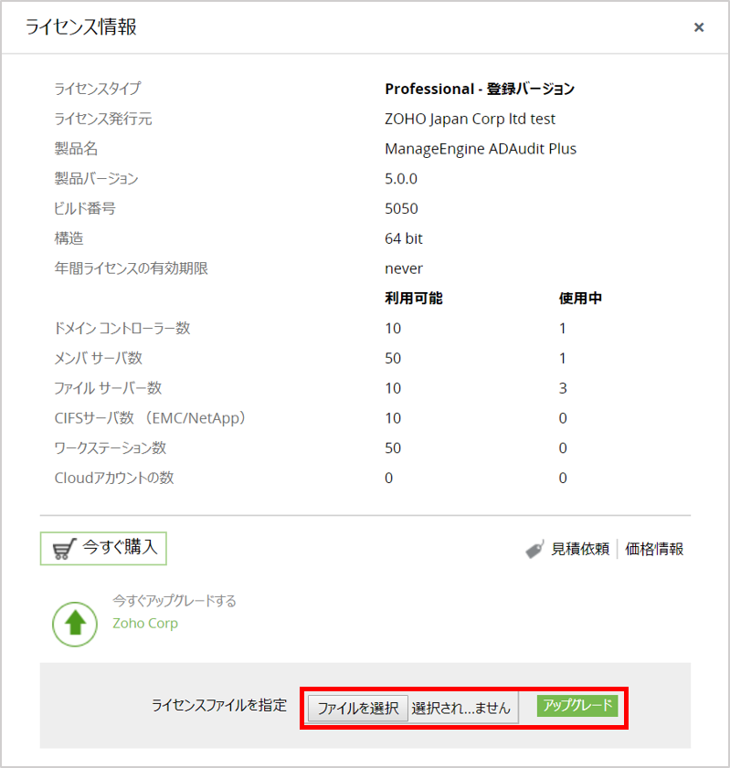 ライセンスに関するお問い合わせは、弊社ライセンス担当 ( jp-license@zohocorp.com) までご連絡ください。