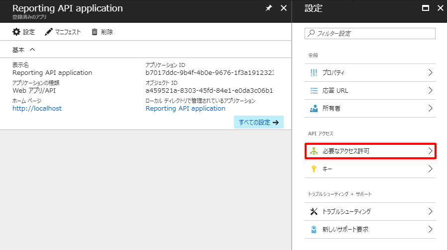 1.[アプリの登録] > 登録したアプリケーションの名前を選択します。