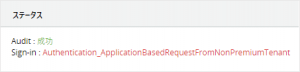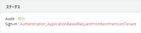 エディションが「Premium」ではない場合、[Sign-in] のステータスが「Authentication_ApplicationBasedRequestFromNonPremiumTenant」と表示されます。