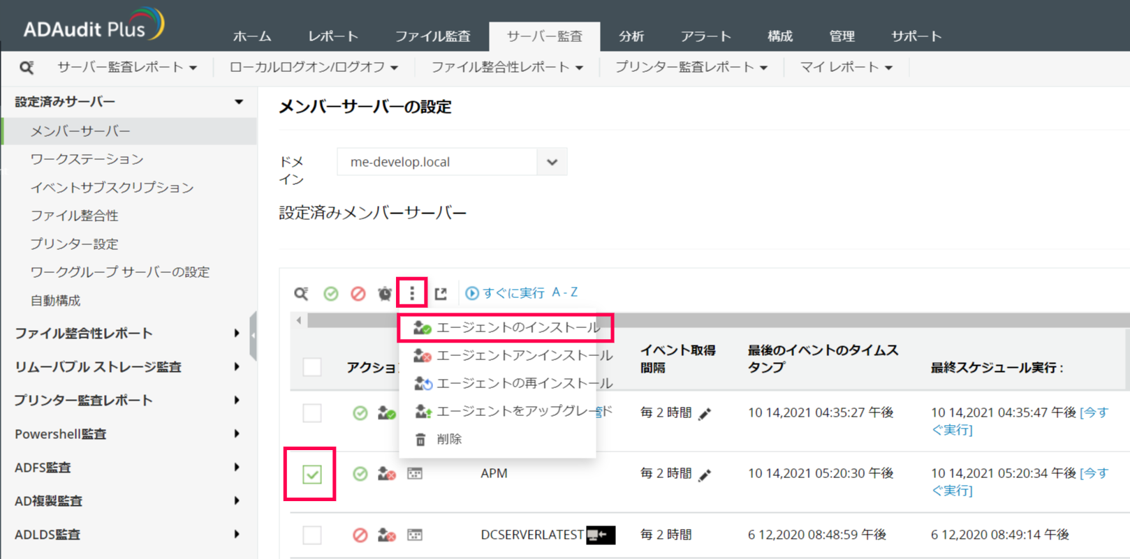 ※エージェントをインストールする対象デバイスを、あらかじめADAudit Plusに追加しておく必要があります。