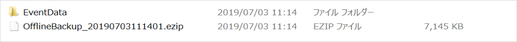 8.<ADAP_HOME>\Backupフォルダーに、「ezipフォルダ」と「EventDataフォルダ」の2つが作成されます。