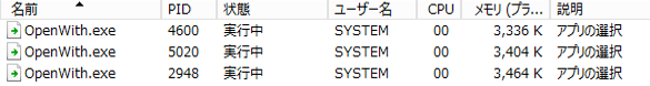 以上により、OpenWith.exeがプロセスとして生成されます。