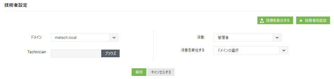 - 「役割」から技術者に役割を割り当てます(役割の作成方法はこちらを参照)。