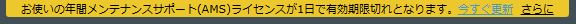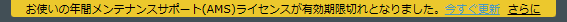 通常ライセンスを利用している場合、保守契約期限内であるにもかかわらず、AMSライセンスの有効期限が切れる旨のメッセージがコンソール画面上部に表示される場合があります。