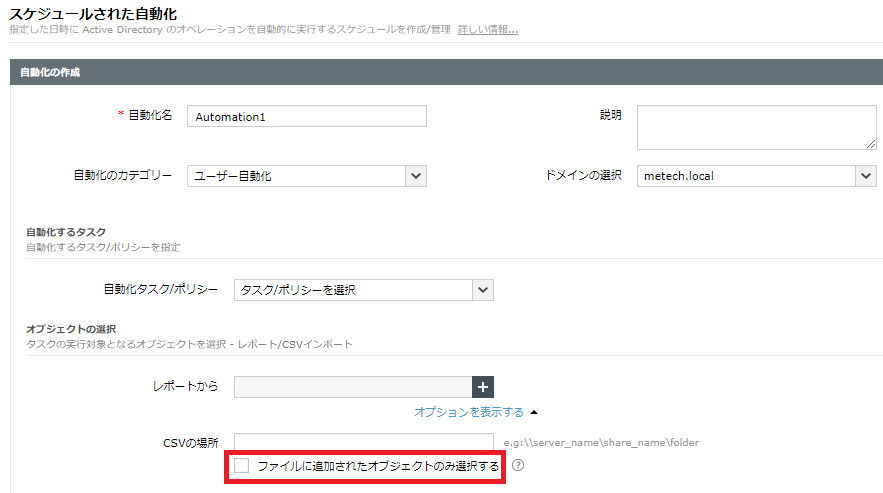 - 自動化設定にてオプション「ファイルに追加されたオブジェクトのみ選択する」(下画像を参照)が有効になっている