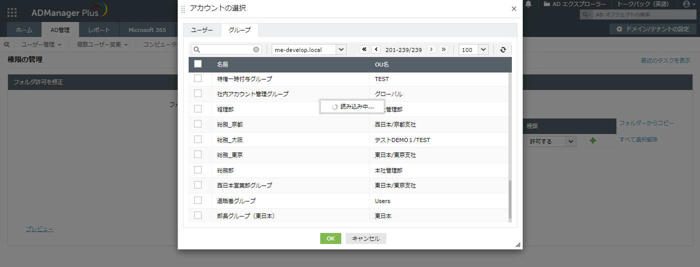 共有フォルダーのアクセス許可設定を変更するとき、セキュリティグループにアクセス権限を付与することは可能ですか?
