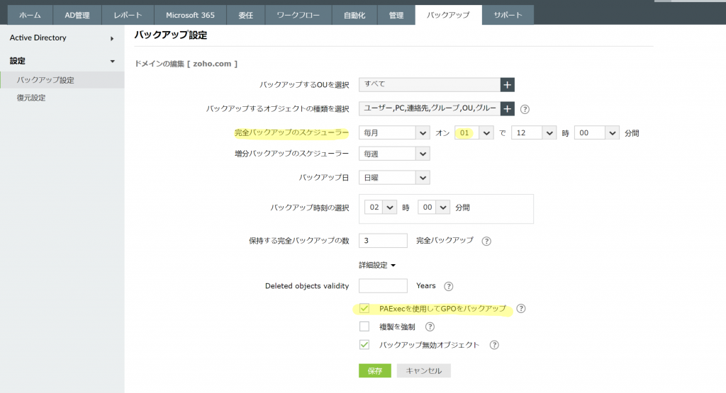 [バックアップ設定] の [詳細設定] の [PAExecを使用してGPOをバックアップ] を有効にすると、どのような効果があるか。回答2
