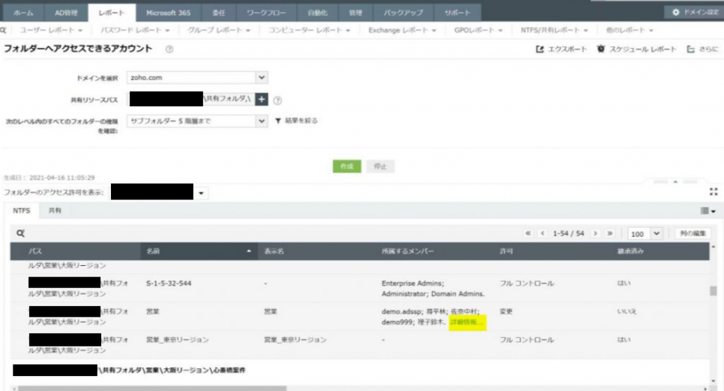 【事象】[フォルダーへアクセスできるアカウント] レポートで、グループメンバーが正しく表示されない